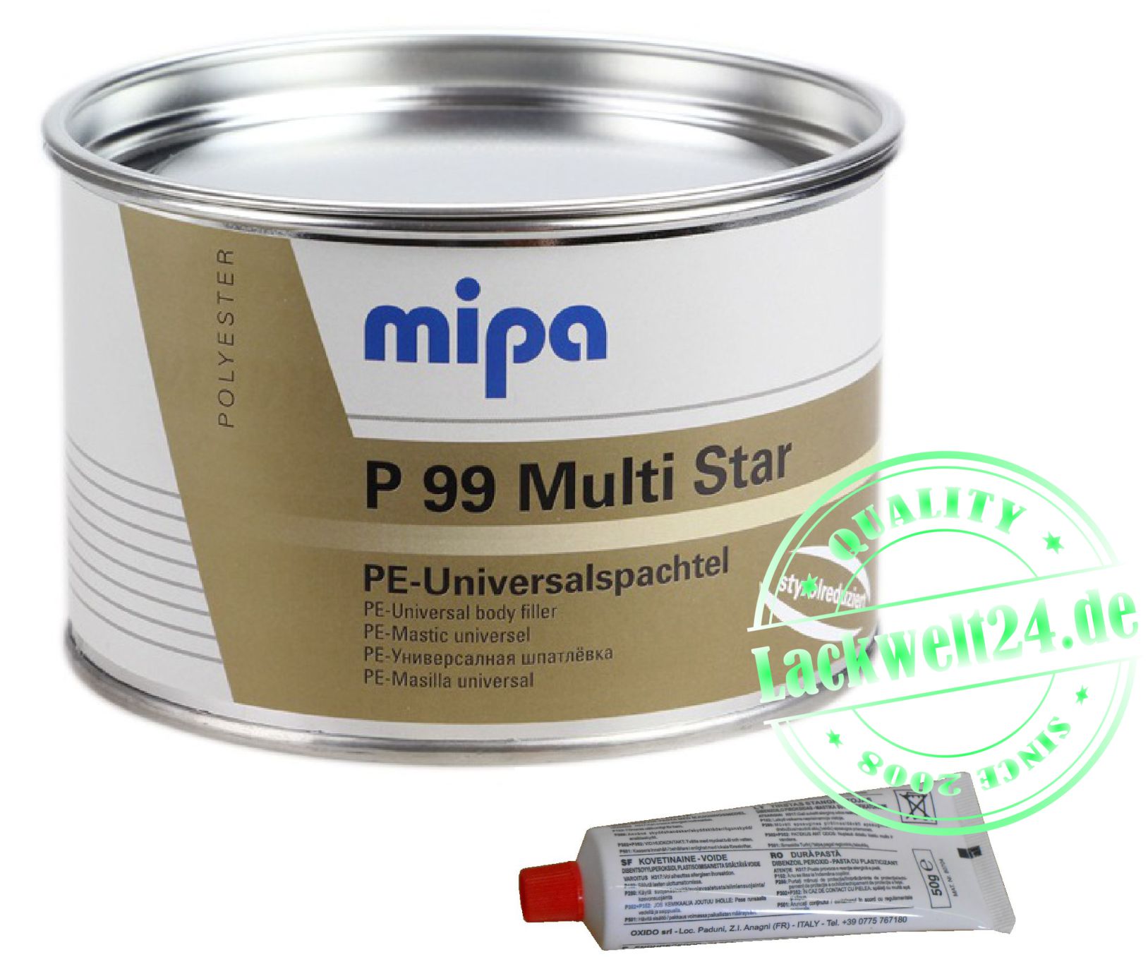Mipa P 99 Multi-Star styrolreduziert ist ein Füll- und Finishspachtel mit Haftung auf Stahlblech, verzinkten Blechen, Aluminium, verzinnten Flächen und GFK. Kurze Trockenzeit und leichte Schleifbarkeit sind weitere Merkmale dieses Spitzenprodukts. Der Styrolanteil des Mipa P99 Multi-Star styrolreduziert liegt bei <10%.