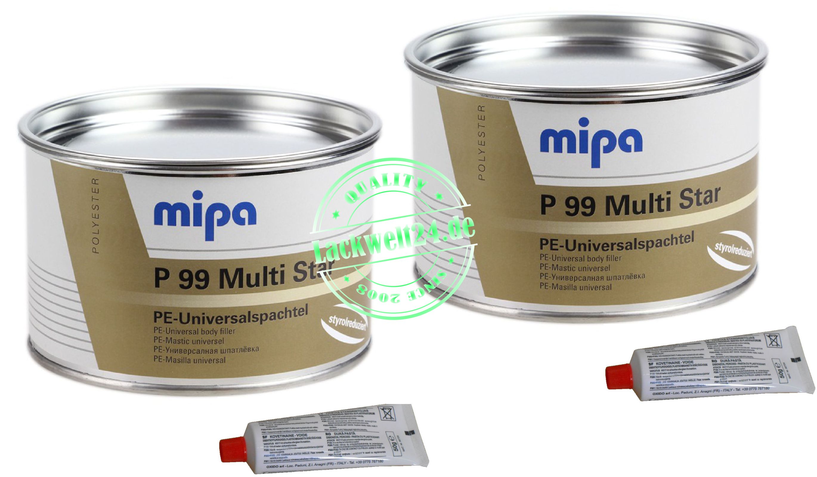 Mipa P 99 Multi-Star styrolreduziert ist ein Füll- und Finishspachtel mit Haftung auf Stahlblech, verzinkten Blechen, Aluminium, verzinnten Flächen und GFK. Kurze Trockenzeit und leichte Schleifbarkeit sind weitere Merkmale dieses Spitzenprodukts. Der Styrolanteil des Mipa P99 Multi-Star styrolreduziert liegt bei <10%.
